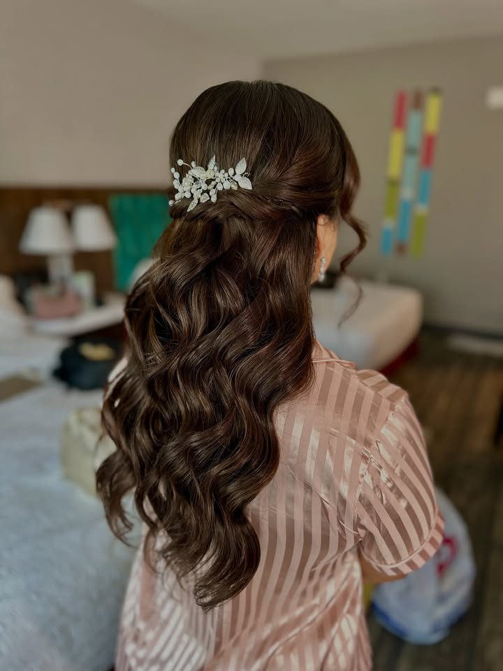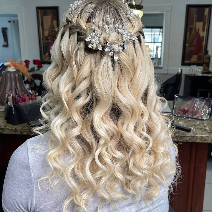 The half-up, half-down style strikes a balance between playful and polished. Adding rhinestone clips, pearl pins, or a sparkly barrette turns this classic into the ultimate birthday hairstyle. It works well on both straight and wavy hair.
