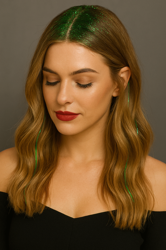For women who love to stand out, glitter roots or hair tinsel can transform a simple hairstyle into a showstopper. It is playful, fun, and screams party vibes—perfect for a birthday night out.