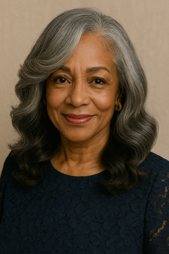 Whether you go for full silver or subtle streaks, this style celebrates maturity as elegance, not limitation.