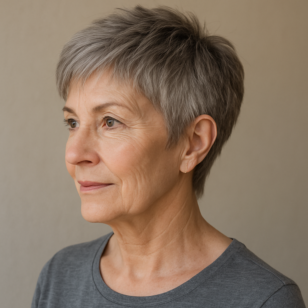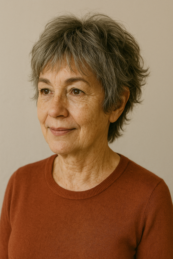 There’s something undeniably liberating about short hair after 60. The shaggy pixie embodies that freedom—it’s light, breezy, and radiates personality. This cut brings out facial features like cheekbones and eyes, offering a lifting effect without the need for harsh styling.