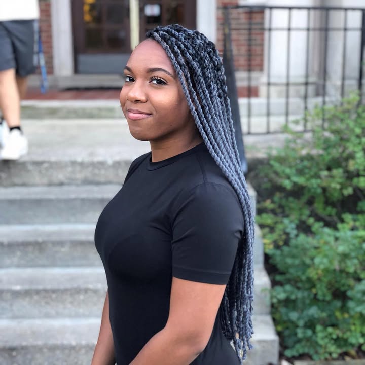 This short gray box braid bob is the perfect mix of classic and contemporary. The even cut frames the face beautifully while the silvery shade adds a touch of sophistication and modern flair. It’s a chic, low-maintenance style that gives off effortless confidence—ideal for women who want something stylish yet easy to manage.