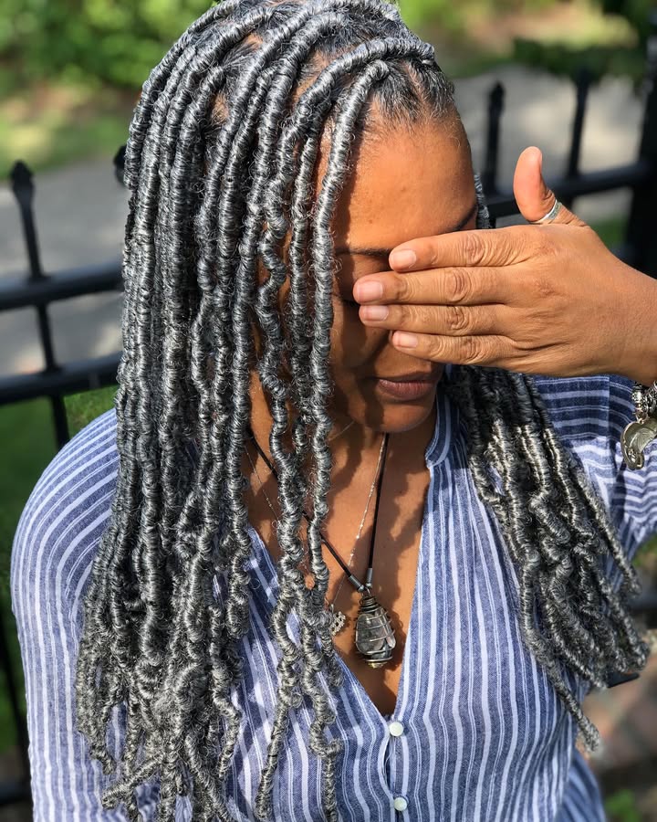 For those embracing their natural gray, moisturizing and shine-enhancing products are key to keeping your braids soft and luminous. If you’re going for dyed silver or gray extensions, toning shampoos can help maintain that cool, ashy finish.