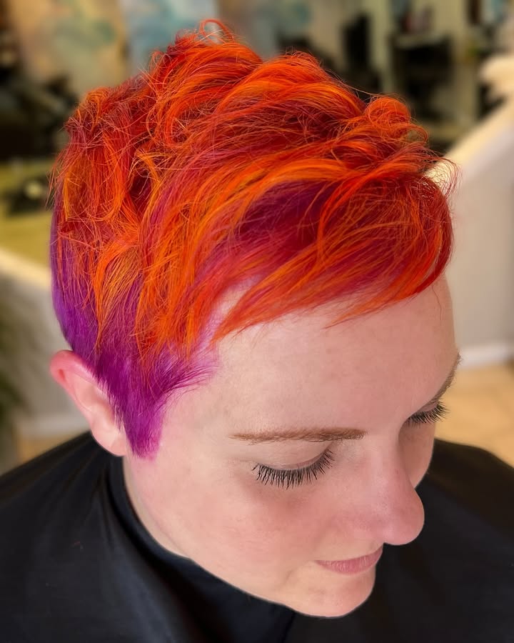 Bold colors turn a pixie into a statement piece. Shades like electric blue, violet, hot pink, lime green, or fiery orange are becoming popular. The short length makes color maintenance easier because you only need small amounts of dye.
