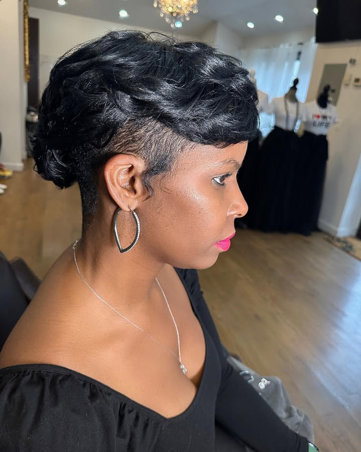Straight hair works well with sharp, defined cuts. Curly and coily textures shine with layered pixies that highlight volume.