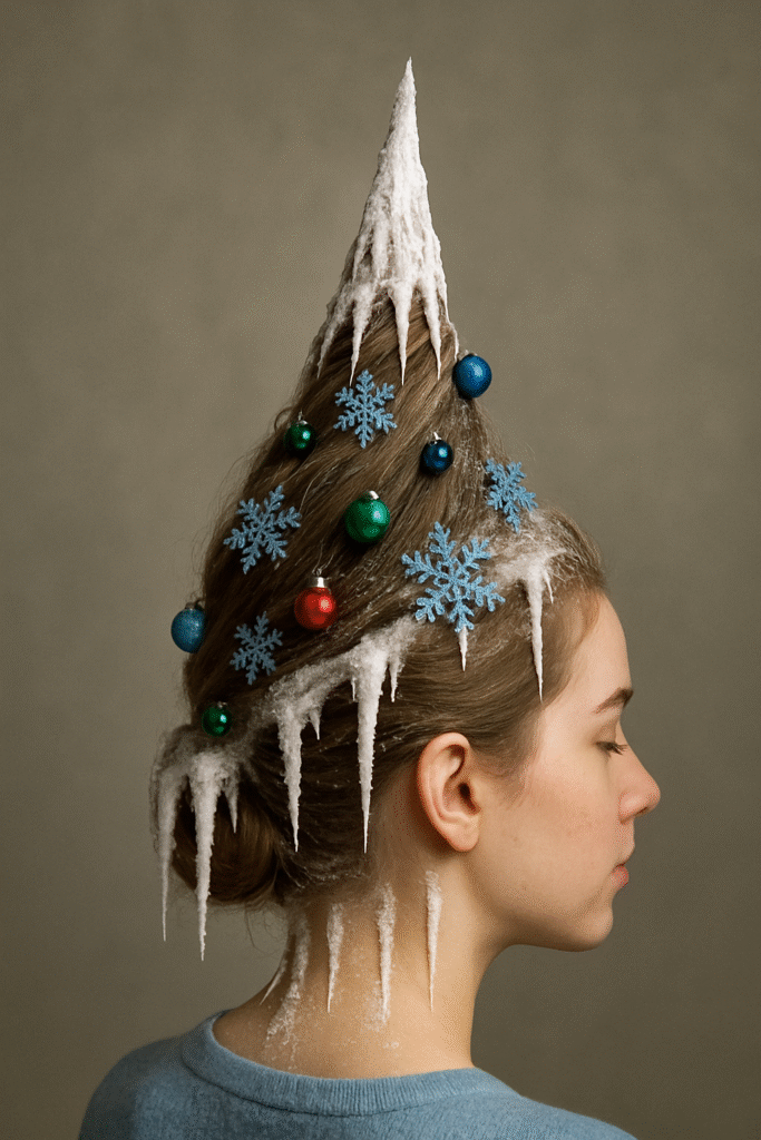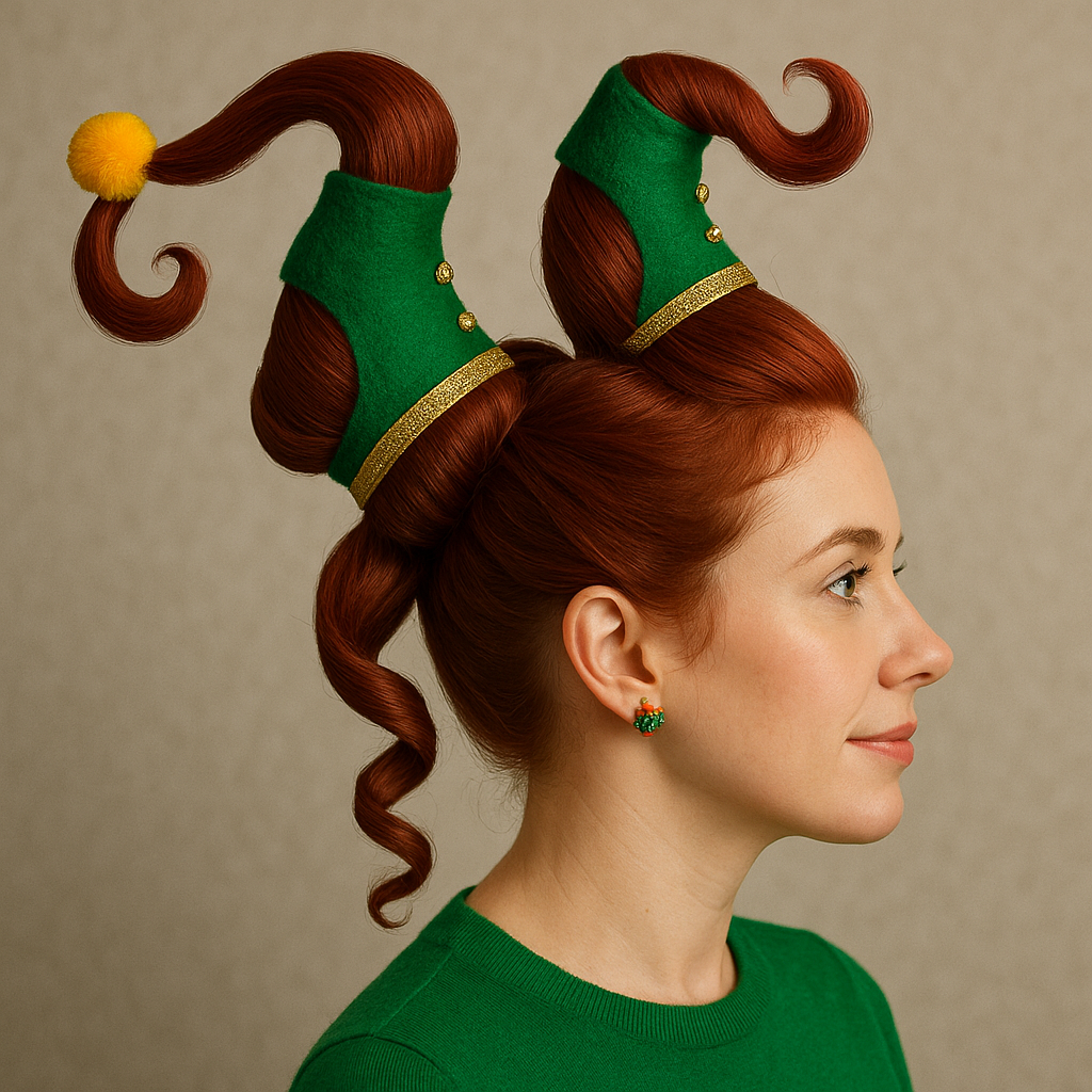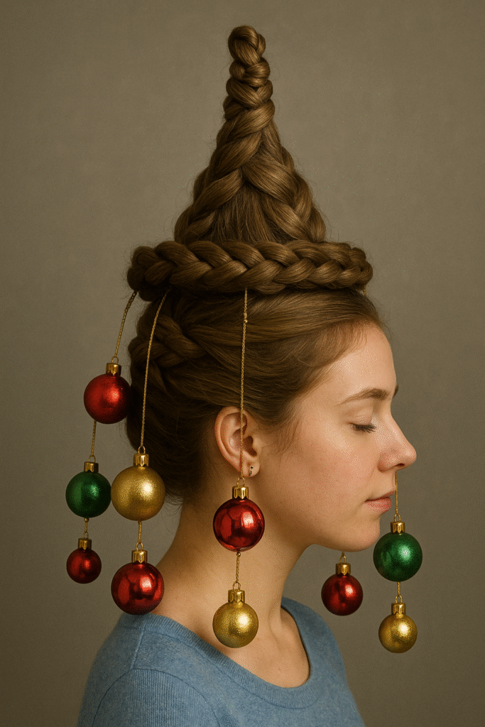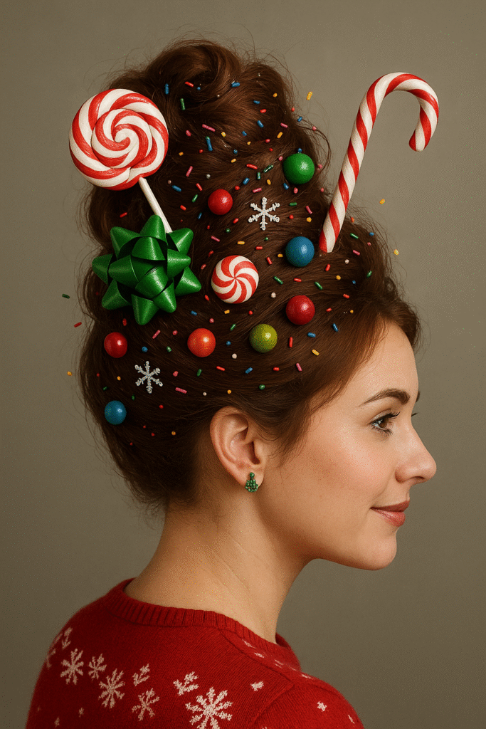 What makes crazy Christmas hairstyles so popular is how customizable they are. You can go cute and whimsical with bows and tinsel, or lean into wild holiday glam with oversized accessories, bold colors, and structured shapes. These hairstyles work for kids, teens, and adults, and they pair beautifully with festive outfits from cozy Christmas sweaters to elegant holiday dresses.